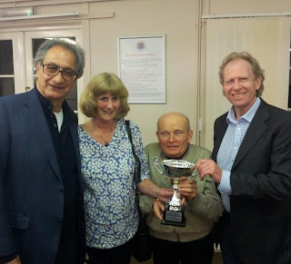 Winners - Lorna Vestey & Roland Gronau with special guest of honour Zia Mahmood